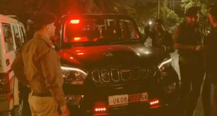 जानकारी के अनुसार बीती रात दिल्ली में हुए बम ब्लास्ट को देखते हुए हरिद्वार में सुरक्षा व्यवस्था हेतु वाहनों की चेकिंग की जा रही थी। इस दौरान थाना सिडकुल पुलिस द्वारा किर्बी चौक पर वाहनों की चेकिंग के दौरान चिन्मय चौक से एक काले रंग की स्कॉर्पियो जो लाल नीली बत्ती और हूटर बजाते हुए किर्बी चौक की तरफ आई जिसको रोक कर चेक किया गया तो उक्त वाहन को टिबड़ी निवासी शिवम चल रहा था। जिसके द्वारा वाहन के संबंध में कोई दस्तावेज प्रस्तुत नहीं किये गये। जिस पर पुलिस ने वाहन को भली भांति चेक करके कब्जे में लेकर एमबी एक्ट में सीज कर दिया गया है।