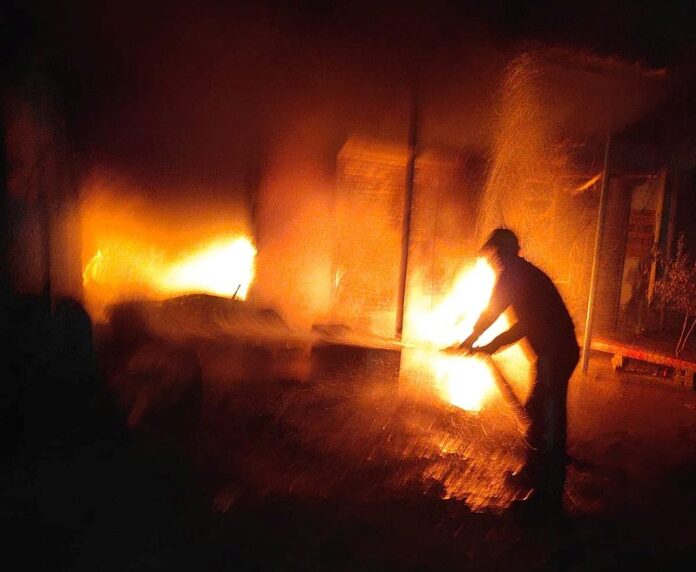 चाय की दुकान लगी अचानक आग लगने से भारी नुकसान