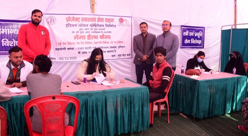 इंडियन आयल कारपोरेशन लिमिटेड के उत्तरी क्षेत्र पाइपलाइन रुड$की प्रभाग के सीएसआर कार्यक्रम के अंतर्गत रजत शहरी एवं ग्रामोत्थान संस्थान हरिद्वार द्वारा ग्राम मुंडाखेड$ा कलां लक्सर में एक मेगा हेल्थ कैम्प का आयोजन किया गया। कैंप में ी प्रसूति रोग, दंत रोग, बाल रोग व हड्डी रोग विशेषज्ञ डाक्टरों ने मरीजों का चेकअप किया व मुफ्त दवा वितरण किया गया। इंडियन आयल कारपोरेशन पाइपलाइन प्रभाग लंढौरा स्टेशन के मुख्य परिचालन प्रबंधक पुष्पेंद्र कुमार बताया कि इंडियन ऑयल विभिन्न परियोजनाओं द्वारा अपने सामाजिक दायित्वों का पालन करता है इसी क्रम में पिछले एक वर्ष के लिये इंडियन ऑयल द्वारा प्रोजेक्ट स्वास्थ्य सेवा वाहन का परिचालन किया गया है, जो कि अभी पाइपलाइन क्षेत्र के रुड़की व लक्सर क्षेत्र के 1 गांवों के लिए किया गया है। जिससे पाइपलाइन क्षेत्र के ग्रामीण वासियों को अपने प्राथमिक उपचार हेतु कहीं दूर नही जाना पड$ता उन्हें गांव में ही प्राथमिक उपचार उपलब्ध हो जाता है। ग्राम प्रधान ग्राम मुंडाखेडा कला जुल्फिकार द्वारा बताया गया कि पूर्व में गांव की जनता को अपने प्राथमिक उपचार हेतु भी गांव से दूर अपने खुद के साधनों द्वारा जाना पड़ता था। इंडियन ऑयल की उक्त परियोजना द्वारा ग्रामीणों अपने स्वास्थ्य उपचार हेतु बहुत लाभ मिल रहा है। इंडियन आयल कारपोरेशन के प्रबंधक शुभम गुप्ता ने कहा कि गांव के ग्रामीणों द्वारा ही कारपोरेशन से एक एेसी परियोजना चलाने के लिए अनुरोध किया गया था। जिससे उन्हें अपने गांव में ही स्वास्थ्य लाभ मिल सके। कार्यक्रम को सफल बनाने में संस्थान की अध्यक्षा कनिका शर्मा, यशदीप, कामेंद्र आदि ने सहयोग दिया।