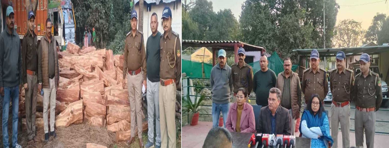 रुद्रपुर। तराई केन्द्रीय वन प्रभाग रुद्रपुर की टीम ने हरियाणा के करनाल जिले में स्थित केदार हर्बल इंडस्ट्रीज पर छापा मारकर करीब 250 क्विंटल (670 नग) अवैध खैर के गिल्टे बरामद किए हैं। मामले में इसमें वन क्षेत्र के साथ-साथ उत्तर प्रदेश, झारखंड, हिमाचल प्रदेश आदि राज्यों से अवैध रूप से प्रकाष्ठ की खरीद-फरोख्त की जानकारी सामने आई थी। इसके बाद अंतरराज्यीय स्तर पर कार्रवाई की गई। प्रभागीय वनाधिकारी तराई केन्द्रीय वन प्रभाग यूसी तिवारी ने पत्रकार वार्ता कर बताया कि जांच में पता चला कि करनाल में स्थित कुछ उद्योग चोरी की खैर लकड़ी खरीद रहे हैं। एसएसपी करनाल से समन्वय स्थापित करने के बाद प्रभाग के 13 सदस्यीय दल को करनाल भेजा गया। 10 दिसंबर की सुबह लगभग 10.30 बजे टांडा एवं पीपल पड़ाव रेंज के वन क्षेत्राधिकारियों के संयुक्त नेतृत्व में केदार हर्बल इंडस्ट्रीज ग्राम वैरसाल थाना बुटाना में तलाशी ली गई। परिसर से यूपी-70-एचटी-2637 नंबर का 14-टायरा ट्रक खैर की लकड़ी से लदा मिला, जबकि गोदाम से 222 नग छिला हुआ खैर प्रकाष्ठ मिला। इंडस्ट्री स्वामी अभिमन्यु सिंह चौहान उर्फ सैंकी किसी भी वैध प्रपत्र को प्रस्तुत नहीं कर सका और कार्रवाई के दौरान मौके से फरार हो गया। बरामद सामग्री को कब्जे में लेकर टांडा वन क्षेत्र परिसर में सुरक्षित कर दिया गया है। जिसकी कीमत 10 लाख रुपये बताई जा रही है। प्रेसवार्ता में उप प्रभागीय वनाधिकारी शशिदेव और मनीन्दर कौर मौजूद रहे। टीम में वन क्षेत्राधिकारी टांडा रूप नारायण गौतम, पूरन चन्द्र जोशी, कैलाश चन्द्र तिवाड़ी, उप वन क्षेत्राधिकारी टांडा वन क्षेत्र विरेन्द्र सिंह परिहार, वन दरोगा धमेन्द्र मेहरा, नन्दा बल्लभ कांडपाल, नवीन मेहरा, सुरेश पांडे, पूरन चन्द्र पाठक, मोहन सिंह सामन्त, वन आरक्षी पंकज गहतोड़ी, राहुल कुमार एवं भुवन खर्कवाल शामिल रहे।