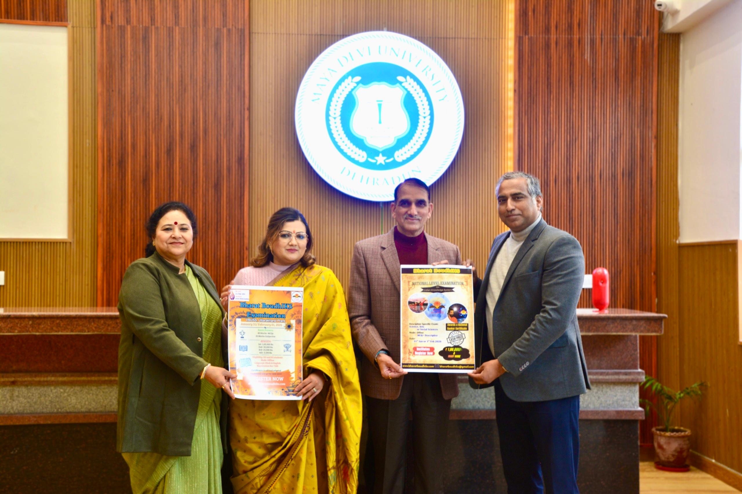 माया देवी विश्वविद्यालय में वीबीयूएसएस राष्ट्रीय स्तर बोधआईकेएस परीक्षा–2026 के पोस्टर का लोकार्पण